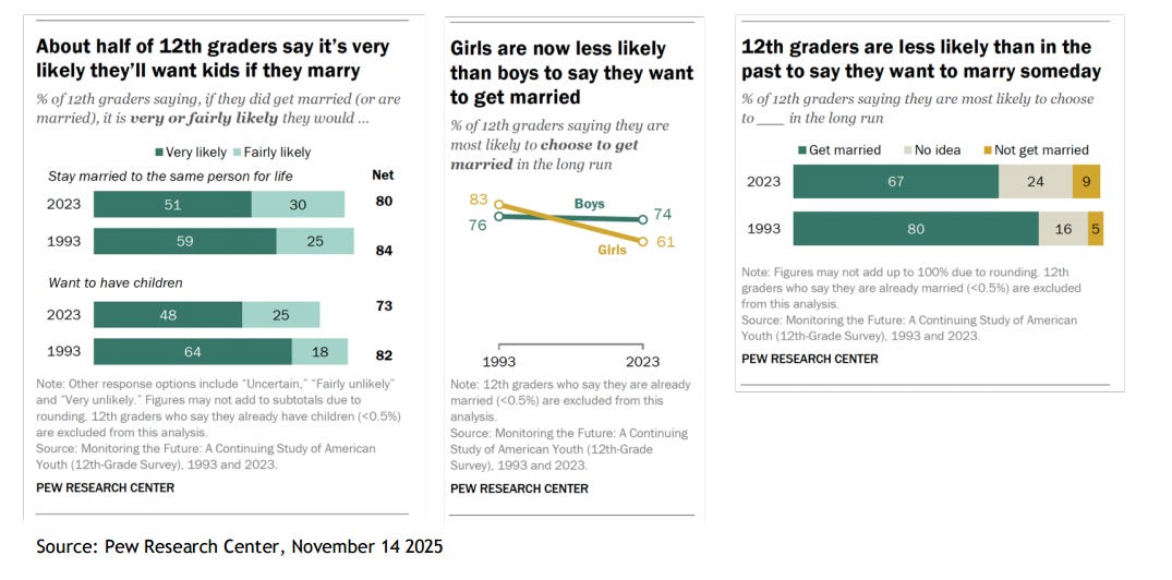 When 12th graders report lower confidence in traditional family formation and Gen Z begins favoring social media bans for minors, we are seeing the early “green shoots” of a new social mood.
