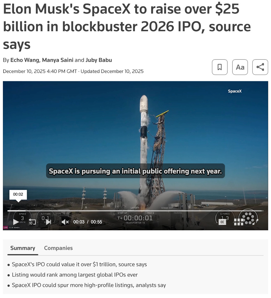 A key near-term catalyst is a potential SpaceX IPO as early as 2026. We don’t see that as "outrageous"... we see it as structurally inevitable.