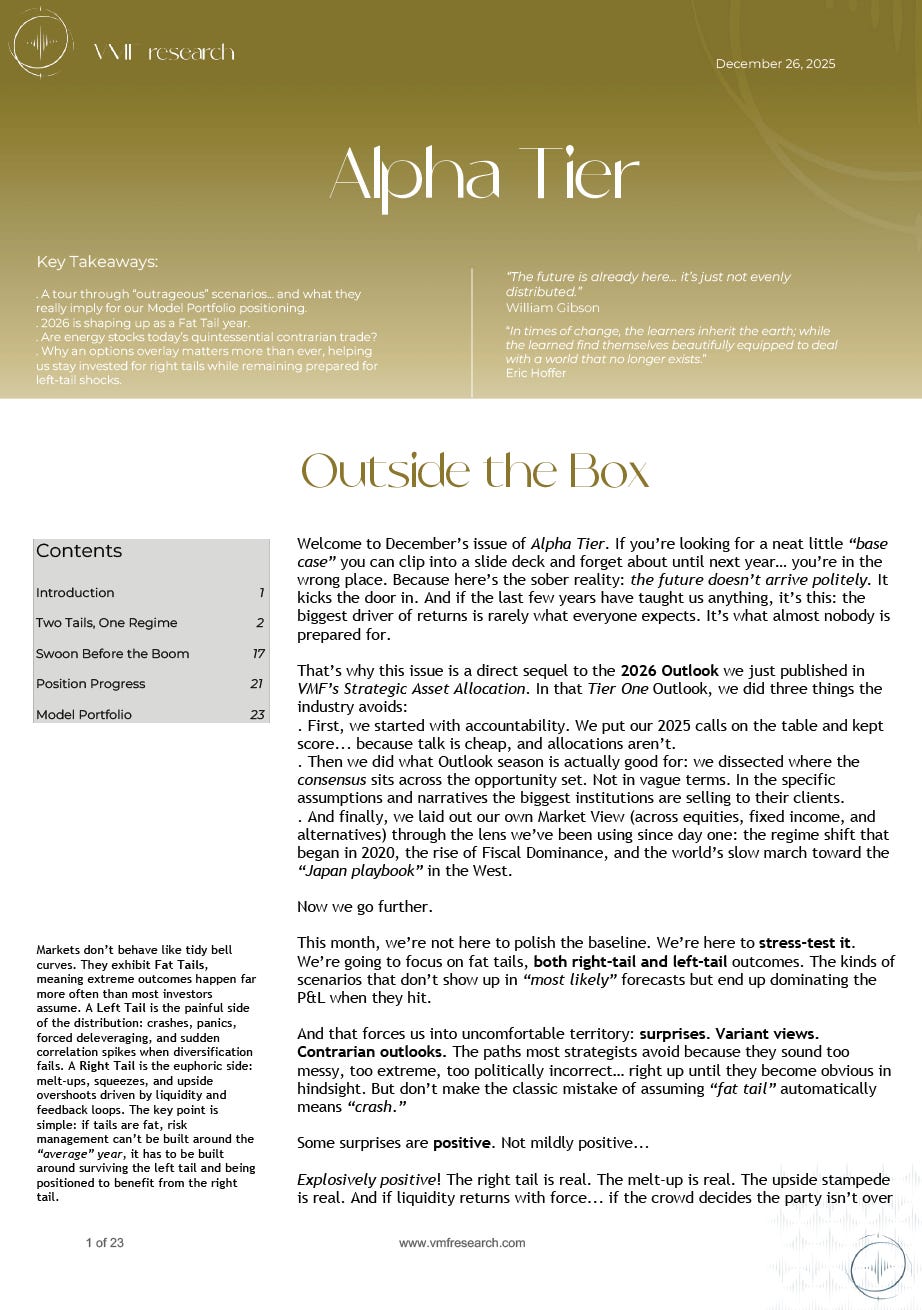 In our December issue of Alpha Tier, we stepped outside Wall Street’s glossy investment outlooks and beyond their tidy ‘base-case’ forecasts.