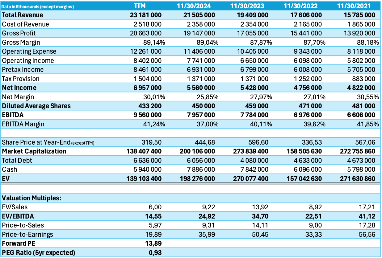 Recurring Revenue: Over 95% of revenue is now subscription-based, giving the company predictable, high-quality cash flows. This is the result of the gutsy pivot in 2013, which turned the stock into a perennial compounder.