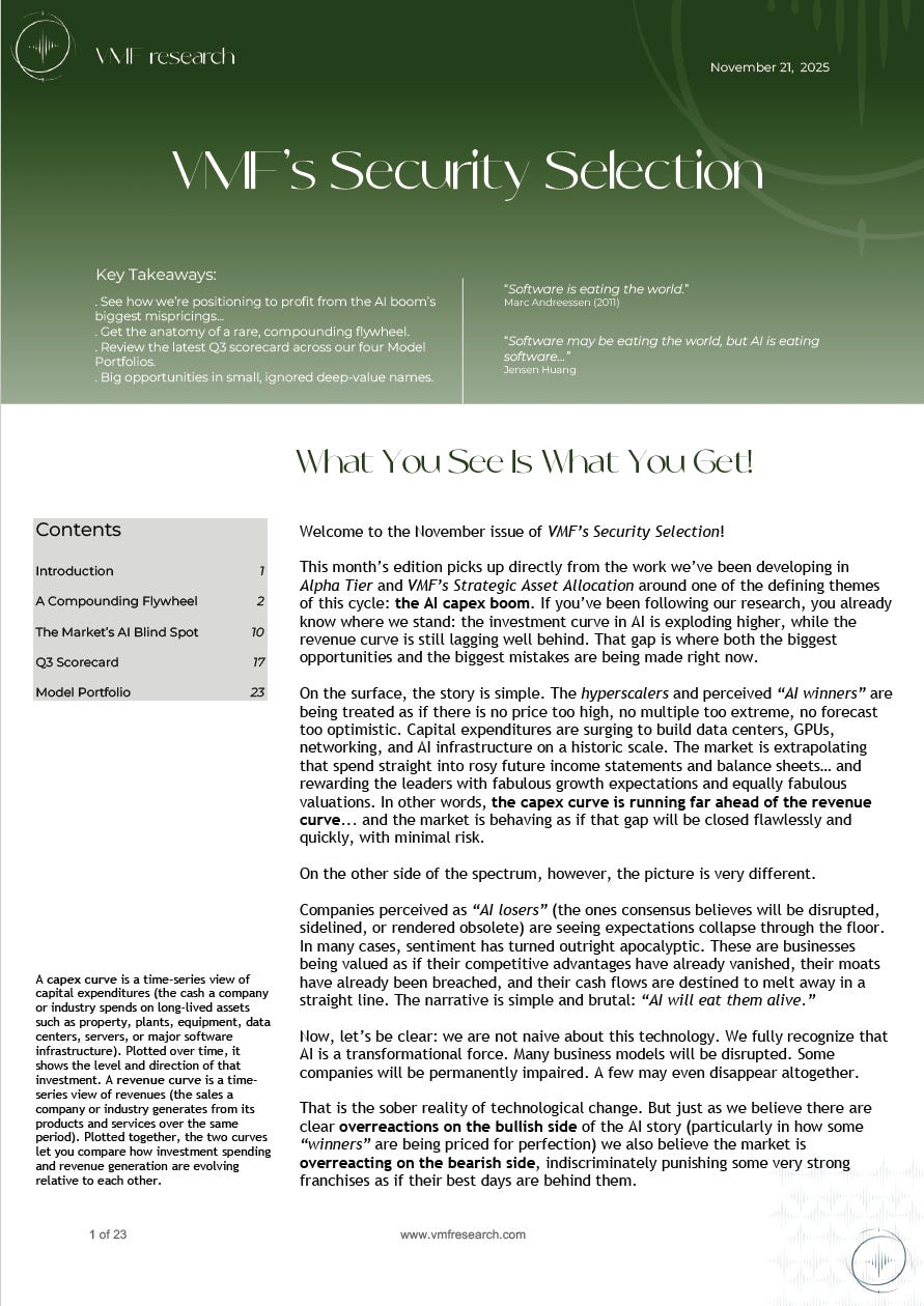 This article is a free preview and tactical tip pulled directly from the November 21, 2025 edition of VMF's Security Selection. In that issue, we went deep on how we're positioning to profit from the biggest mispricings of the AI boom.