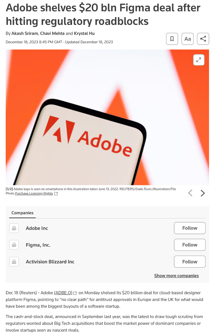 Adobe ended up paying a $1 billion breakup fee. This left a double hangover: a 1$ billion bill and the lingering question of a strategic vulnerability.