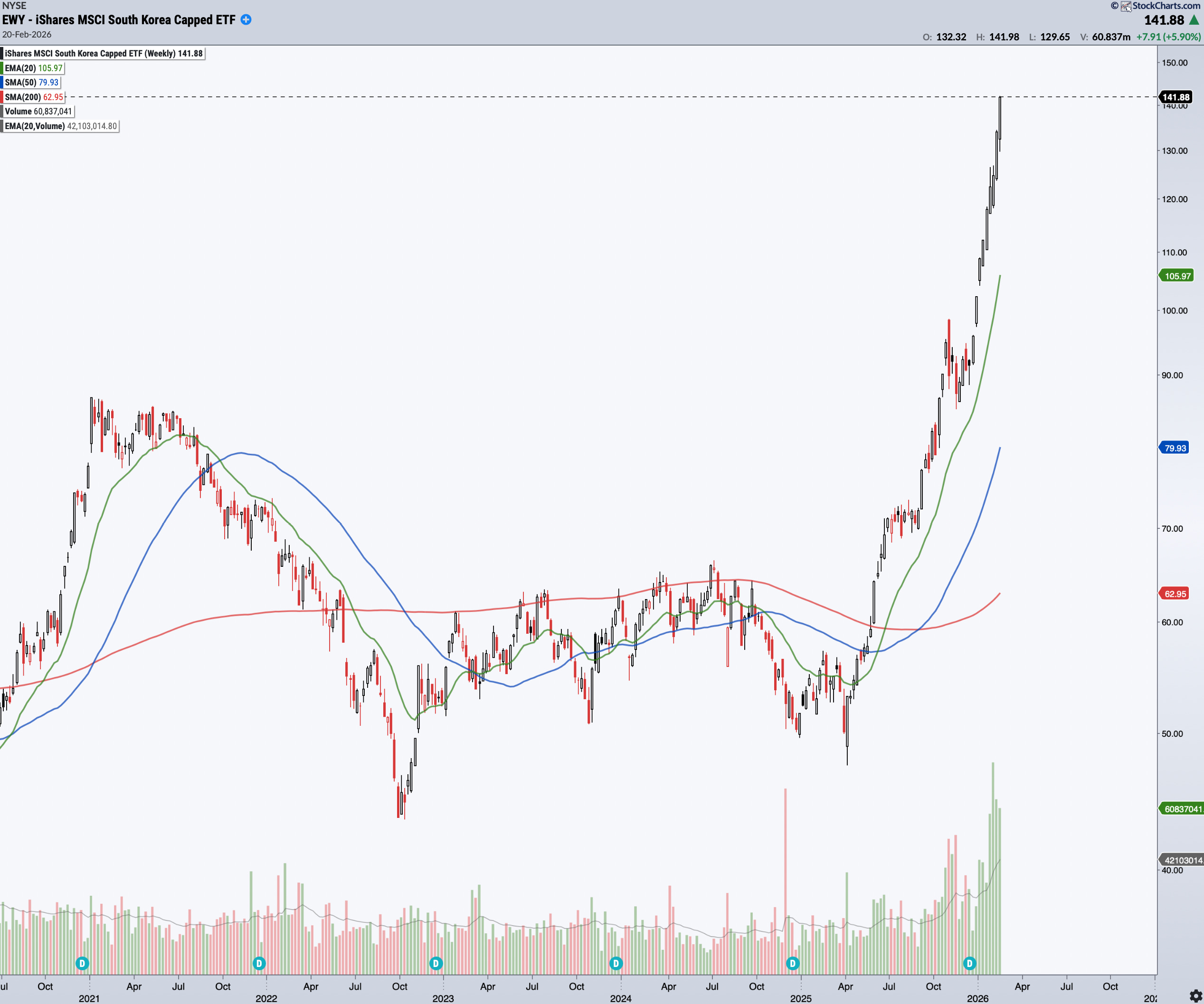 South Korea (EWY) has turned into a market darling almost overnight because it happens to sit right on top of the AI capex wars. Samsung and SK Hynix aren’t just “AI stories” in the way headlines frame them… they’re the industrial backbone powering the buildout.